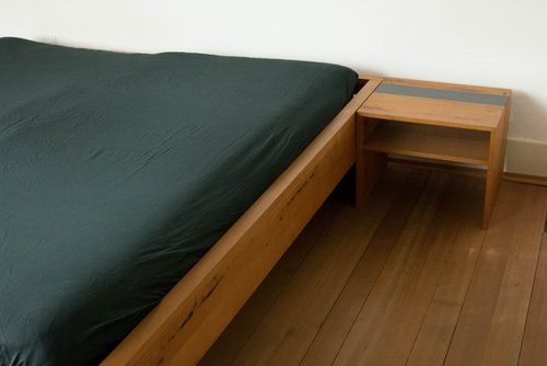Ausführung: Birnbaum, Nachttisch Birnbaum mit Schiefereinlage.